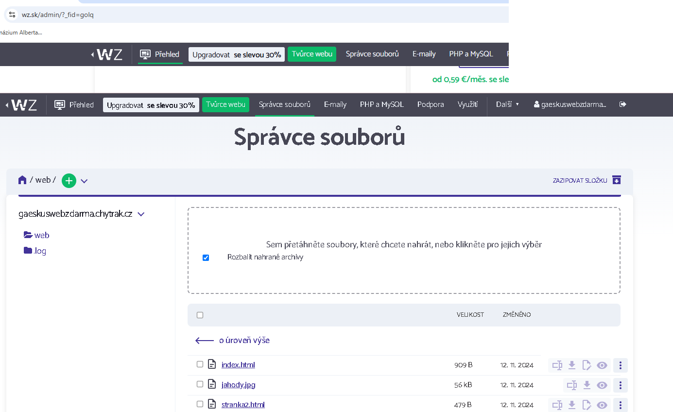 Všetky súbory z priečinka HTML skopírujte na webzdarma do správcu súborov: